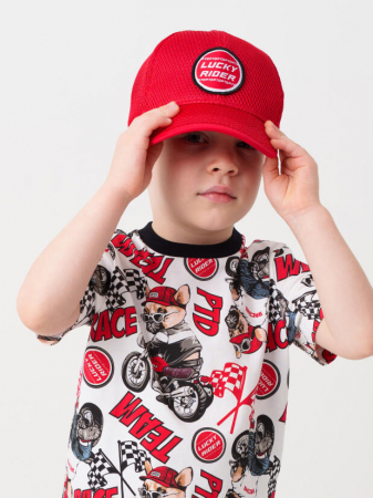 Детская кепка для мальчика. Выполнена из сетчатого дышащего материала. Спереди декоративная нашивка. Изогнутый козырек для защиты от солнца. Застежка на кнопки.