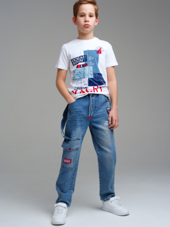 Джинсы из эластичного денима. Посадка comfort fit – свободный крой брючин. Боковые карманы. Эластичный пояс с тесьмой позволяет легко надевать джинсы и утягивать до идеальной посадки в зависимости от комплекции ребенка.