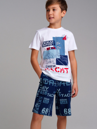 Комплект: футболка, шорты из качественного и приятного на ощупь трикотажа джерси. Высокое содержание хлопка 95%. Благодаря наличию эластана в составе ткани изделие проще в уходе и держит форму. Regular fit. Эластичный пояс со шнурком.