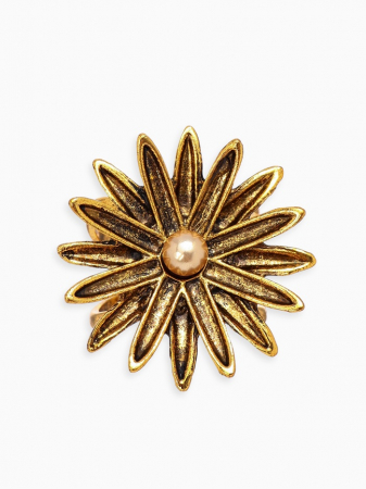 Кольцо для платка «Цветок Астра», белое в чернёном золоте (арт. 10904667)