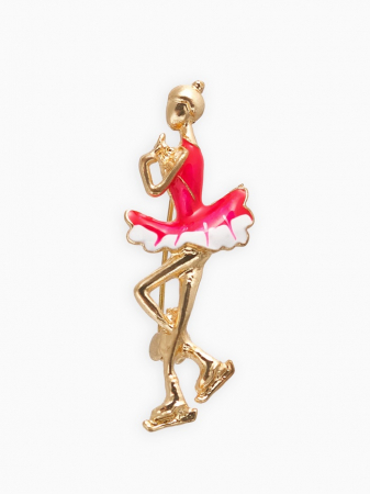 Брошь «Фигуристка», цвет бело-малиновый в золоте (арт. 2738721)