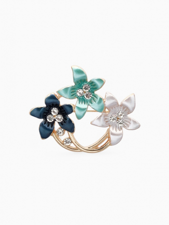 Брошь «Цветы» трио, цвет бело-сине-голубой в золоте (арт. 1489244)