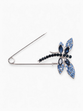 Булавка «Стрекоза» 7.5 см, синяя в серебре (арт. 3924017)