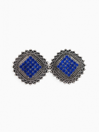 Зажим для кардигана «Квадраты», цвет синий в чернёном серебре (арт. 4981550)