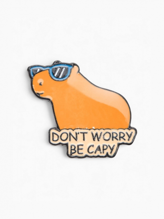 Значок «Капибара не волнуйся», оранжевый в чёрном металле (арт. 10841101)
