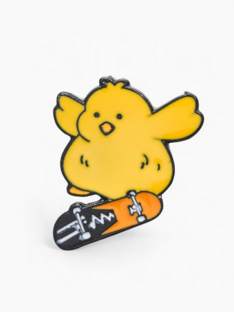 Значок «Цыплёнок» на скейте, цветной в чёрном металле (арт. 9305693)