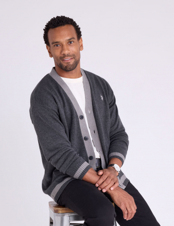 This cardigan is a wardrobe essential for smart-casual dressing. Its versatile design can take you from laid-back weekends to polished office looks with ease. The classic two-tone colorway and timeless cut make it a reliable go-to layer throughout the seasons.