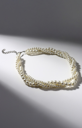 Бусы «Жгут» с жемчугом, 3 нити, бусины №4, 6, 8, цвет молочный в серебре, 38 см (арт. 10203575)