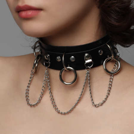 Чокер «Искушение» цепи и кольца, цвет чёрный в серебре, 40 см (арт. 9669585)