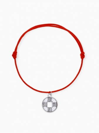 Браслет-оберег «Красная нить» денежная, цвет чернёное серебро, d=8 см (арт. 2860148)