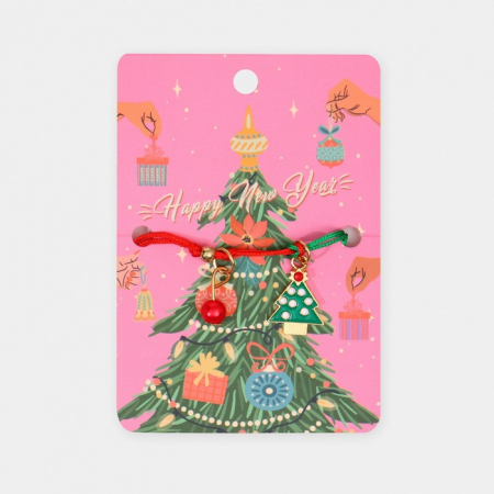Браслет «Новогодний» ель с бусинкой, цвет красно-зелёный, 6 см (арт. 7881407)