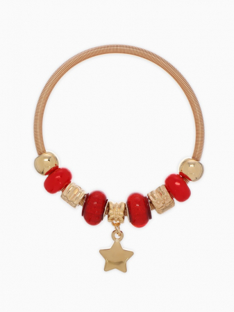 Браслет с шармами «Марджери» звезда, красный в золоте, d=6.5 см (арт. 4448214)