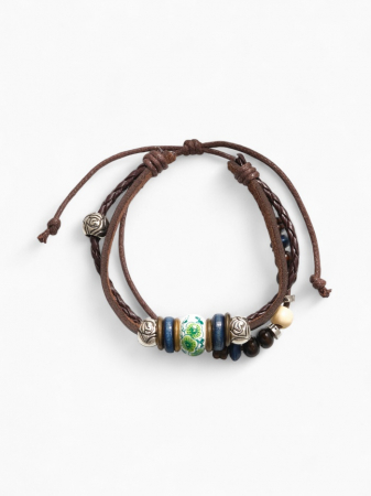 Браслет кожа «Хиппи» бусина, коричневый, d=6 см (арт. 912293)