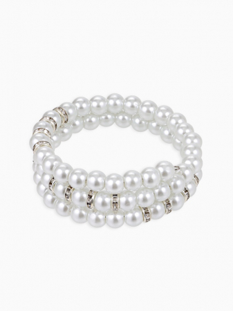 Браслет-пружинка «Жемчужинка морская» 3 ряда, белый в серебре, L=7 см (арт. 983965)