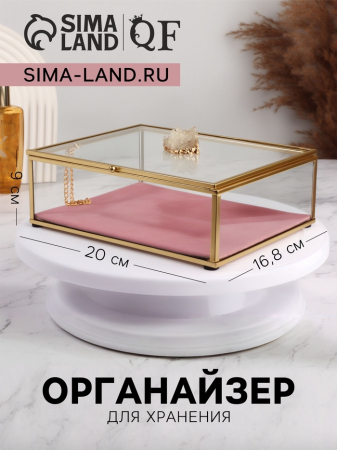 Шкатулка для украшений «Кристалл», с крышкой, стеклянный, 1 секция, 20?16.8?9 см, цвет медный, розовый (арт. 6945221)