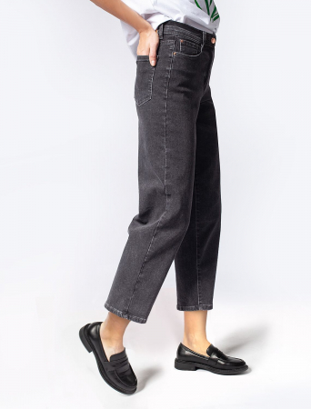 Серые джинсы из плотного прочного хлопка с добавлением нитей эластана. Укороченная модель изящно открывает лодыжки. Высокая посадка грамотно подчеркивает силуэт. Данная модель легко и безупречно поможет составить модный образ вместе с трикотажным поло, свободной блузкой, футболкой или жакетом.