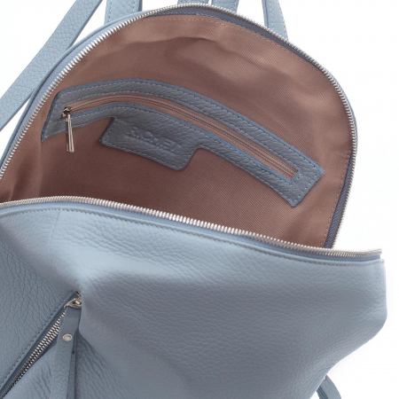 мягкой кожи, снаружи оснащён тремя вместительными вертикальными карманами на молнии.