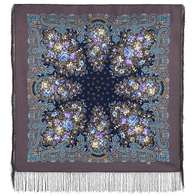 Платок шерстяной с шелковой бахромой "Душистый луг", вид 1, 89x89 см