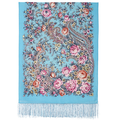 Шарф шерстяной с шелковой бахромой, "Цветочный роман", вид 61, 60х150 см