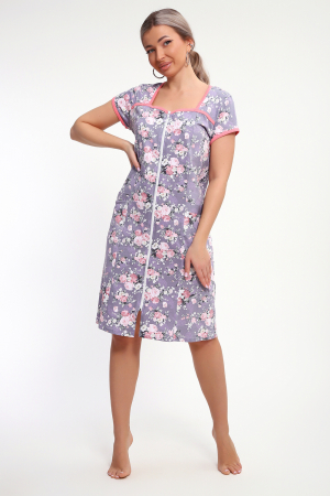 Красивый женский халат на молнии. На полочках рельеф, который подчеркнет вашу фигуру. В рельефе карман. Рукав короткий. Горловина, кокетки и рукава обработаны бейкой из отделочной ткани. Халат прекрасно подойдет для дома, дачи и отдыха.