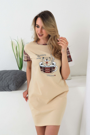 Молодёжная сорочка в виде удлинённой свободной футболки с милым симпатичным принтом. Можно использовать в качестве домашней туники.