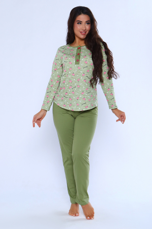Женский костюм из 100% хлопка модного цвета. Свободный силуэт дарит свободу движений, а яркий принт поднимает настроение. Лонгслив с длинным рукавом, вырез поло с растягивающимися пуговицами. На брюках пижамы два кармана, резинка на поясе не врезается в кожу. В одежде для дома все должно быть продумано до мелочей, ведь именно здесь так хочется расслабиться и не думать ни о чем.