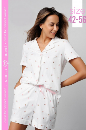 Представляем Вам очаровательную пижаму с шортами и рубашкой от Raposa, которая станет идеальным выбором для летних ночей! Эта милая пижама, выполненная из мягкого и дышащего хлопка с добавлением эластана, подарит Вам невероятный комфорт и свободу движений. Нежный принт с цветочками создает романтичный и эстетичный вид, а атласная лента на шортиках добавляет пикантности и стиля. Эта пижама женская настоящая находка для девушки, которая ценит комфорт и красоту. Она идеально подходит для сна, отдыха дома и даже для утренней пробежки по саду. Благодаря своей универсальности, эта пижама белая в цветочек станет отличным подарком для подруги, сестры или мамы. Костюм домашний с шортами и рубашкой выполнена в больших размерах до 54 и 56 и подойдёт для полных женщин плюс сайз и беременных будущих мам. Шорты на резинке обеспечат идеальную посадку на любой фигуре, идеально будет смотреться на высоких и невысоких. Легкая и приятная к телу хлопковая ткань не мнется, что делает костюм пижама идеальной для путешествий и активного отдыха. В швах удобные карманы для мелочей, а короткие рукава рубашки не стесняют движений. Эта пижама трикотажная - настоящий символ летнего комфорта и стиля! Пижама комплект двойка станет изюминкой фотосессии для образа, как из пинтерест. Мы уверены, что Вы полюбите эту пижама набор за ее нежность, красоту и удобство.