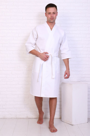 Вафельный халат-кимоно отельный. Рукав 3/4. Карманы накладные. Воротник планка. Плотность вафельного полотна 225 гр.