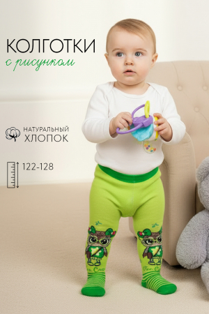 Оригинальные детские колготки. Однотонная основа, носок в полоску. С обеих сторон вывязана сова и надпись Be Cool