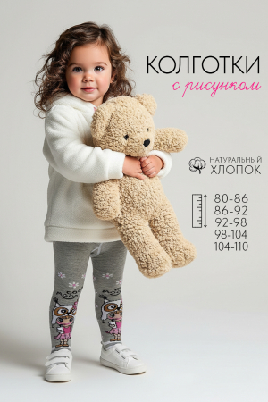 Оригинальные детские колготки. Однотонная основа, носок в полоску. С обеих сторон вывязана девочка в шапке и надпись Good mood (Хорошее настроение).