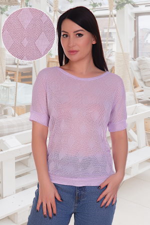 Футболка женская свободного покроя из лёгкого, воздушного, приятного к телу ажурного трикотажа. Горловина в виде лодочки, спущенная пройма и низ футболки обработаны широким манжетом.