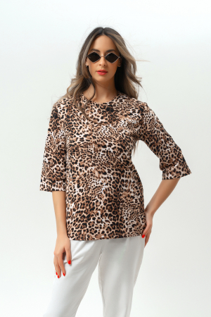 Футболка Raposa - идеальный выбор для стильных и модных женщин. Женская футболка обладает всеми необходимыми чертами, чтобы стать любимой в вашем гардеробе. Она выполнена из 100% хлопка, что делает ее максимально комфортной в носке. Одним из ключевых преимуществ является ее универсальность. Благодаря своему прекрасному качеству, она будет выглядеть привлекательно и стильно в любой ситуации. Вырез горловины в этой модели округлый, что делает футболку еще более элегантной и женственной. Она идеально подчеркнет вашу нежность и изящность. Рукава имеют длину 3/4, что добавляет ей особой изюминки и придает образу легкость и элегантность. Яркий и красочный леопардовый принт сделает ваш образ неповторимым. Благодаря футболке с принтом вы будете выделяться из толпы и привлекать восторженные взгляды окружающих. Модель станет прекрасным выбором для подростков, идеально подойдет для активного образа жизни, обеспечивая максимальный комфорт и свободу движений. Универсальная футболка идеальный выбор для современных и модных женщин, сочетает в себе стильный дизайн и превосходное качество материала. Закажите ее прямо сейчас и наслаждайтесь комфортом и стилем каждый день. Будьте уверены, эта базовая футболка сделает ваш образ неповторимым и привлекательным.