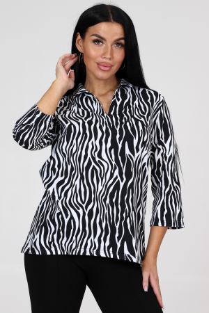 Блузка женская из кулирки. Блузка свободного покроя. Рукав втачной 3/4. Блуза с воротником. Низ изделия фигурный.