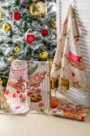 Набор из трех вафельных полотенец размером 48*60см. Стильные кухонные полотенца Уютный вечер добавят атмосферу праздника и уюта на любой кухне. Полотенца из вафельного полотна очень мягкие и приятные на ощупь, при этом просты в уходе и не боятся машинной стирки. Такой набор праздничных полотенец станет отличным подарком.