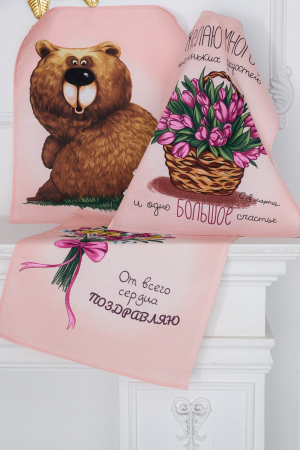 Набор из трех вафельных полотенец Сердечное поздравление незаменим для кухни. Благодаря вафельной структуре ткани полотенца отлично впитывают влагу и идеально подходят для протирания любых поверхностей, будь то посуда, стол или руки. Полотенца с петелькой изготовлены из 100% хлопка, что обеспечивает мягкие и приятные для рук прикосновения. Кроме практичности наши полотенца обладают еще рядом преимуществ, одно из них приятный для глаз дизайн. Цветочные композиции с поздравительными надписями будут радовать владельца при использовании и украшать интерьере.