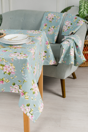 Яркая скатерть Живопись зеленого цвета с цветами выполнена из износоустойчивой рогожки плотностью 170 грамм/ м.кв. К скатерти вы так же можете заказать полотенца Живопись (продаются отдельно).