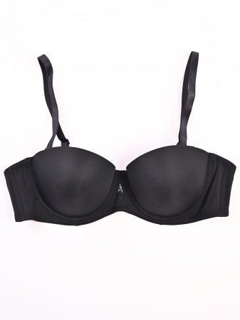 Бюстгальтер черного цвета с эффектом PUSH UP. Поддерживает и приподнимает грудь. Силиконовая лента не дает бюстгальтеру сползать или «гулять» по телу, особенно при активных движениях.