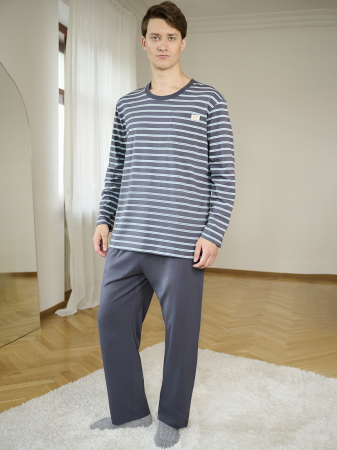 Пижама состоит из лонгслива с длинными рукавами и свободных брюк — классический набор для комфортного отдыха. Выполнена из 100% хлопка: не прилипает к телу, «дышит», не вызывает раздражения.