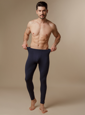 Мужские кальсоны торговой марки Индефини. Кальсоны из хлопка, синего цвета, на мягкой резинке, в классическом стиле.