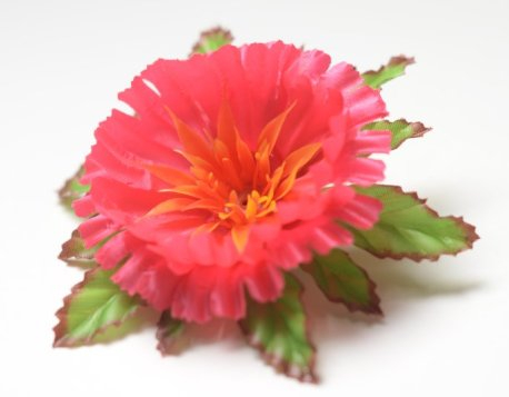 Искусственные цветы, Голова георгина с листом для ветки, венка (арт. 111.466)