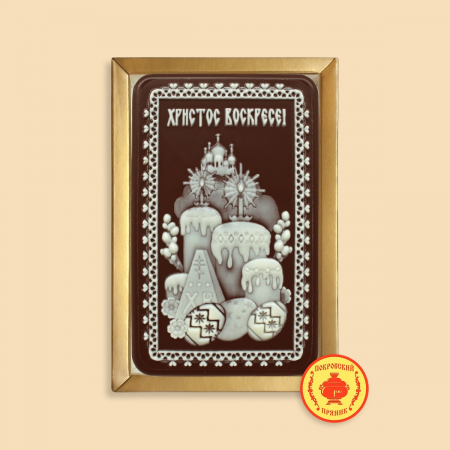Традиционное тесто, изготовленное и выпеченное по старинным русским рецептам, покрывается слоем шоколадной глазури «Премиум» класса,на которую наносится тематический рисунок,