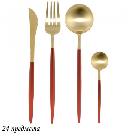Коллекция столовых приборов Vivid изготовлена из нержавеющей стали 18/10, с гальваническим покрытием, эмитирующим золото. Тонкие и изящные они поражают воображение идеальной формой, яркими цветами и стильным дизайном. Ручка столовых приборов декорирована цветной матовой эмалью.