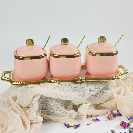 164-012 Набор из 3 банок 350мл с ложками на подставке в под.уп.(х9) Фарфор (арт. 164-012)