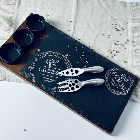 232-025 Сервировочная доска/блюдо для сыра с приборами 5пр. BLACKWOOD в под.уп.(х8)Фарфор (арт. 232-025)