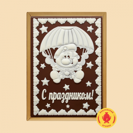 Традиционное тесто, изготовленное и выпеченное по старинным русским рецептам, покрывается слоем шоколадной глазури Премиум класса,на которую наносится тематический рисунок,