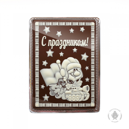 Традиционное тесто, изготовленное и выпеченное по старинным русским рецептам, покрывается слоем шоколадной глазури Премиум класса,на которую наносится тематический рисунок,