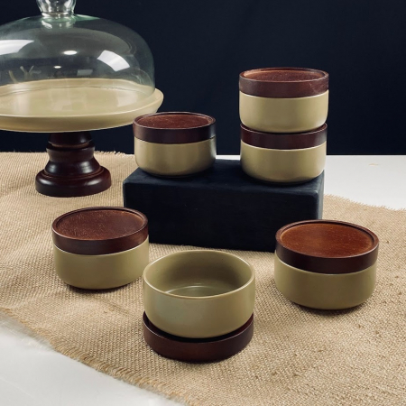 235-133 Набор из 6 салатников 10см с крышками/подставками TROPICAL в под.уп.(х12)Фарфор (арт. 235-133)