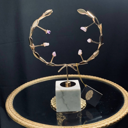 Украшена статуэтка необработанными аметистами, выложены они в форме звезд созвездия "Северная корона" . Подставка - натуральный камень,