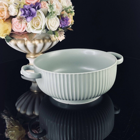 Жаропрочный фарфор - серия представлена в виде прямоугольных, квадратных, овальных и круглых блюд разного объема, круглых кастрюль и порционных формочек.