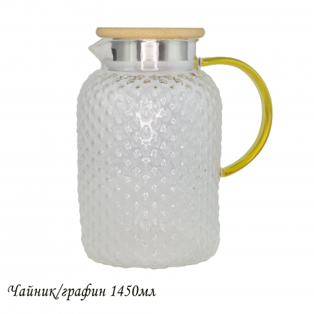 Чайник заварочный из жаропрочного стекла. Крышка изготовлена из бамбука